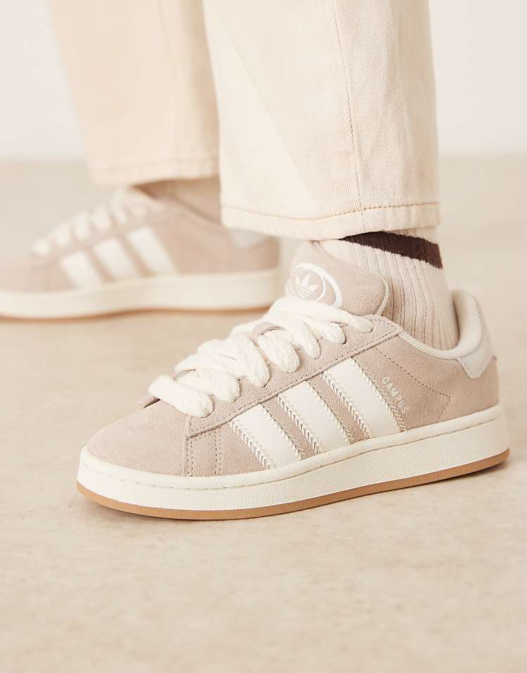 Адидас Кампус кроссовки женские из натуральной кожи бежевого цвета.