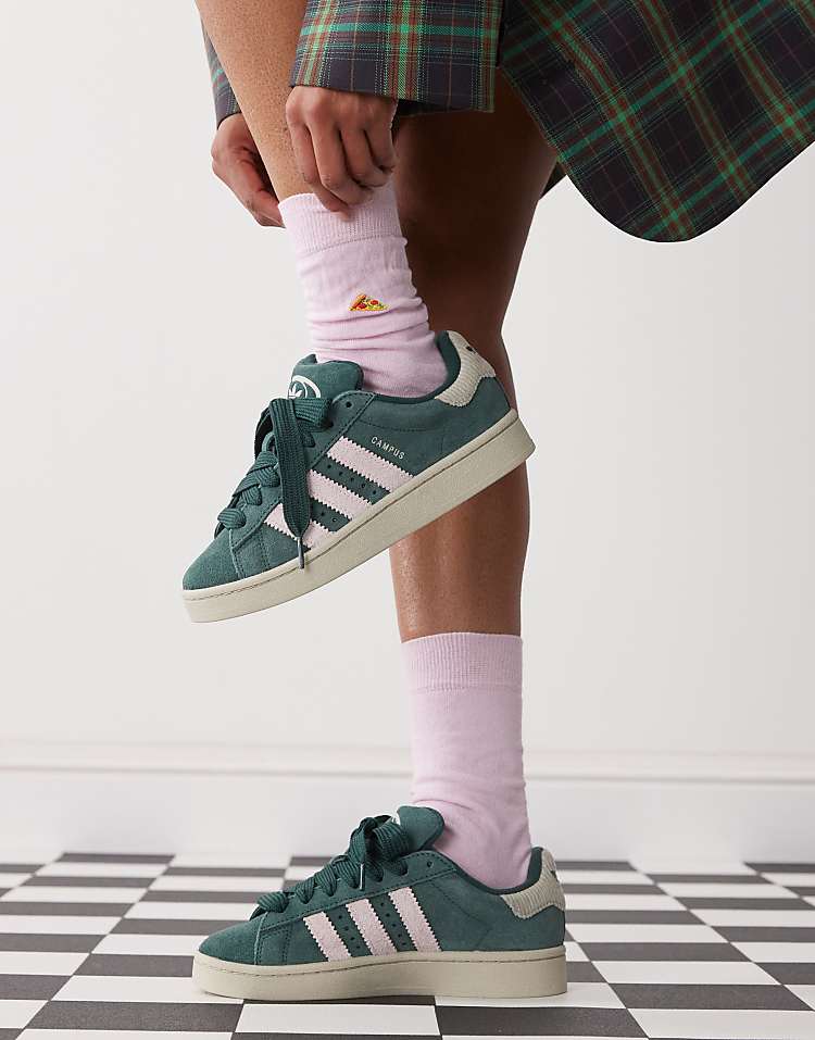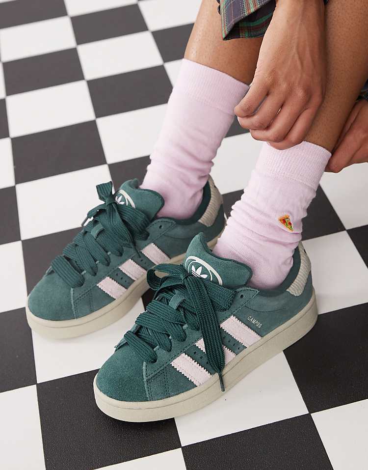 адидас Кампус 00s кроссовки на каждый день из натуральной кожи зелёного цвета.