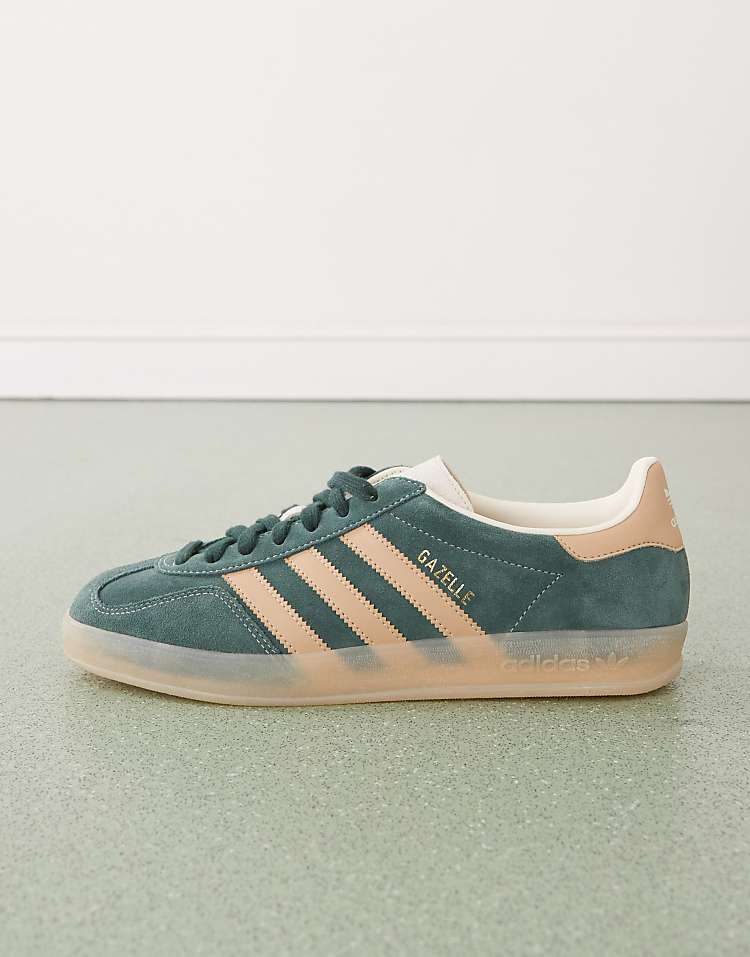 adidas Gazelle Indoor кроссовки из замши и кожи зеленые