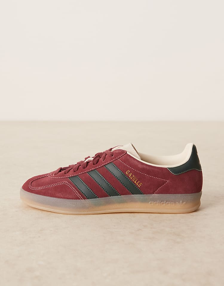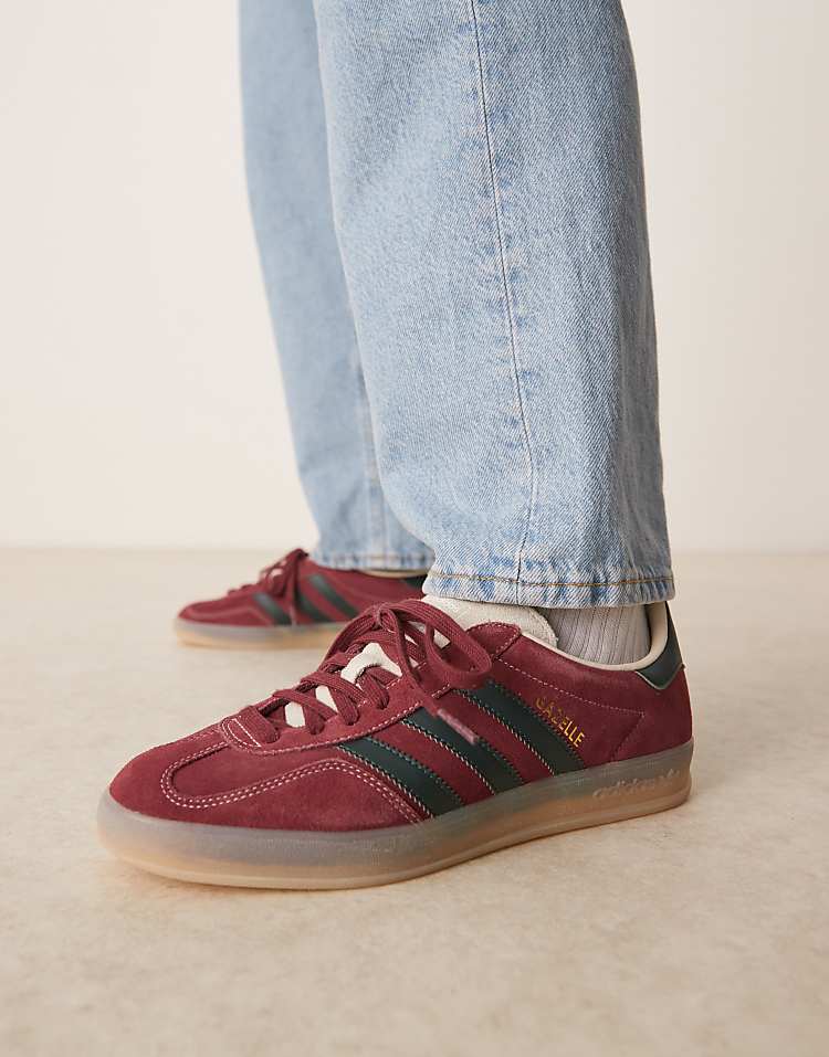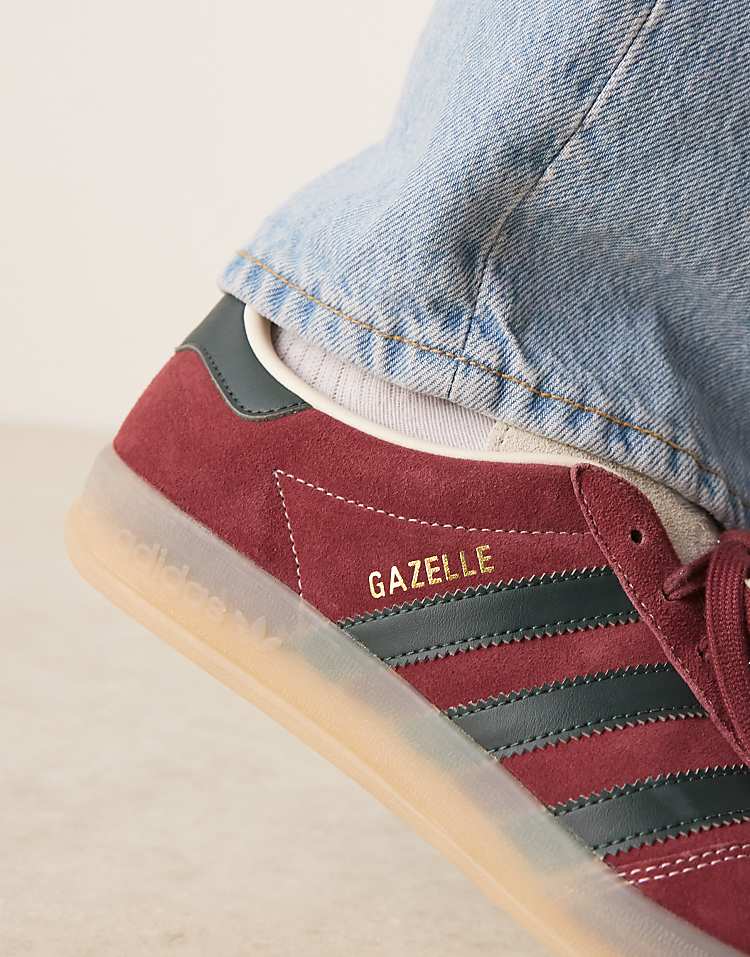 Адидас Газель кроссовки повседневные замшевые бордового цвета с фирменной подошвой и логотипом.