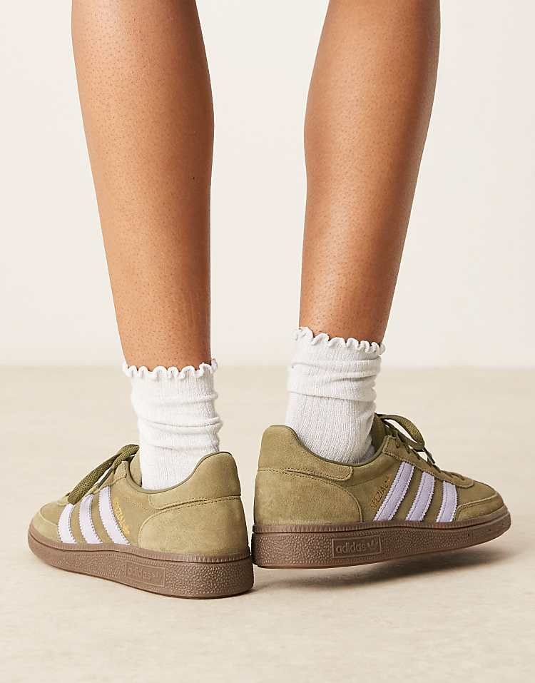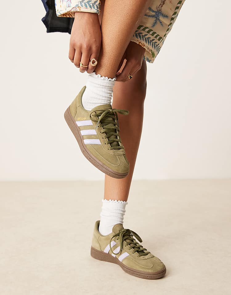 Адидас Хэнболл Спешл кроссовки на каждый день хаки с замшевым верхом и подошвой из резины.