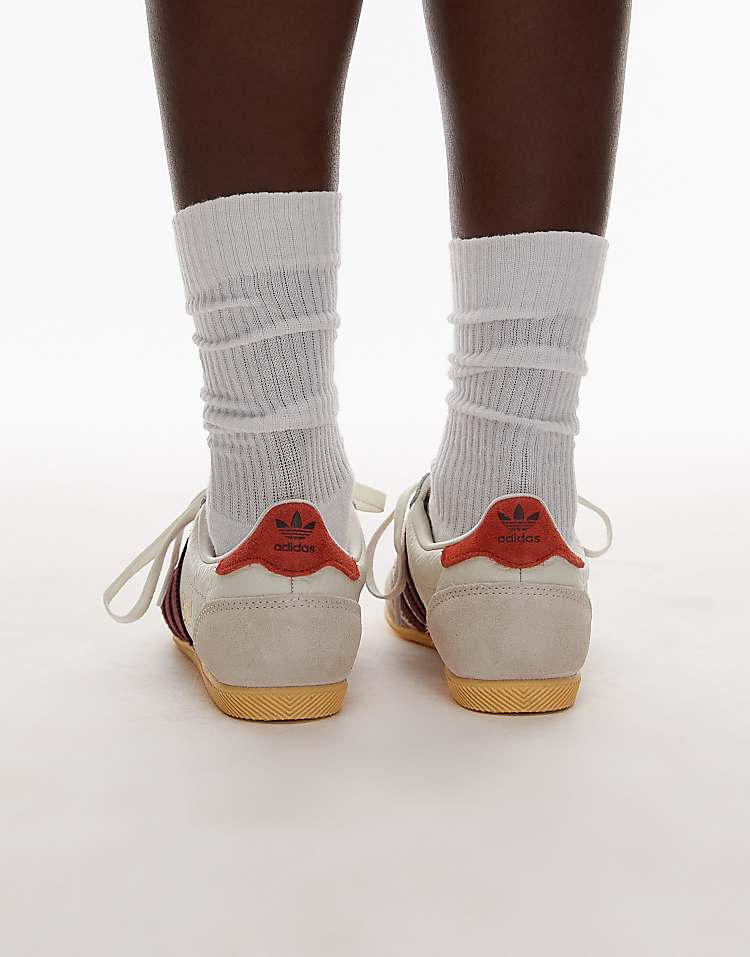 Адидас Ориджиналс Япон старые кроссовки из натуральной кожи и замши белого цвета с контрастными коричневыми вставками.