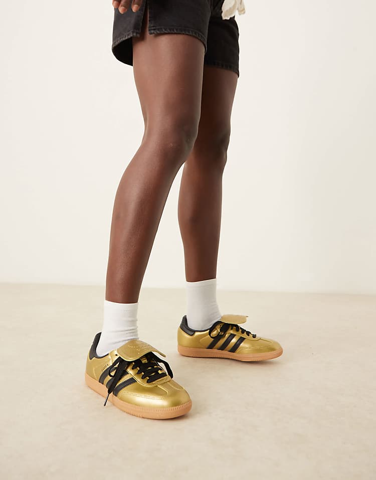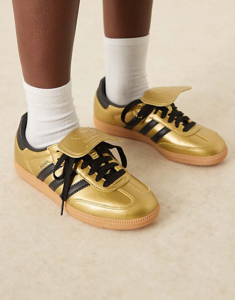 адидас Сэмба LT кроссовки в металлизированном золотом цвете с кожаным верхом.