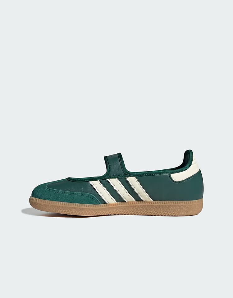 адидас Самба кроссовки женские на липучке зеленого цвета с резиновой подошвой и текстурированным протектором.