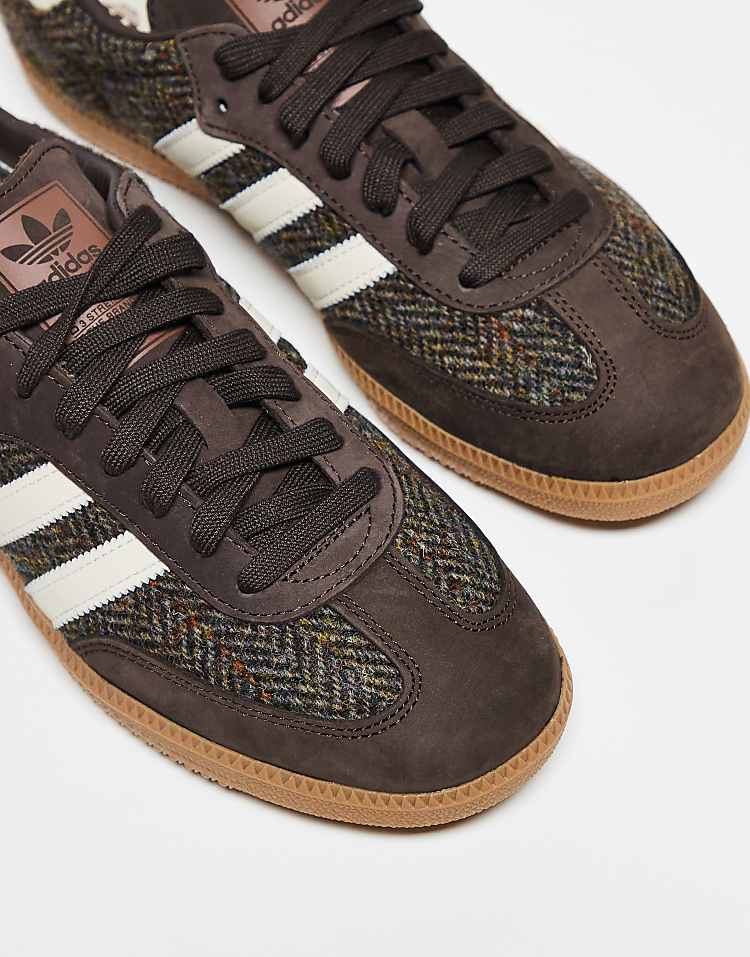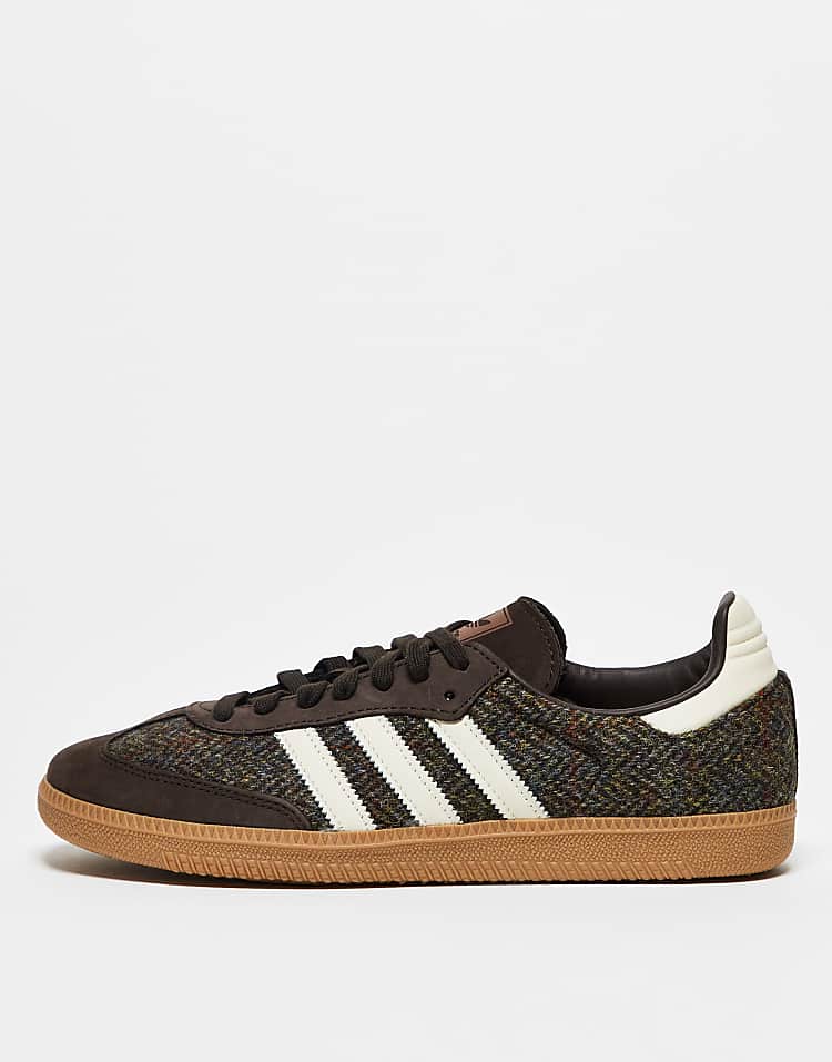 Классические кроссовки adidas Originals Samba OG — это культовая модель, которая с легкостью сочетает в себе спортивный дух и уличный стиль. Их легко узнать по узнаваемому силуэту и фирменному логотипу бренда. Верх выполнен из комбинации натуральной замши и текстиля, что обеспечивает не только привлекательный визуальный эффект в стиле твид, но и долговечность. Особенно ценится фактурная поверхность, придающая модели винтажный шарм.