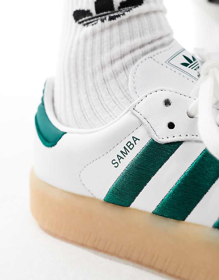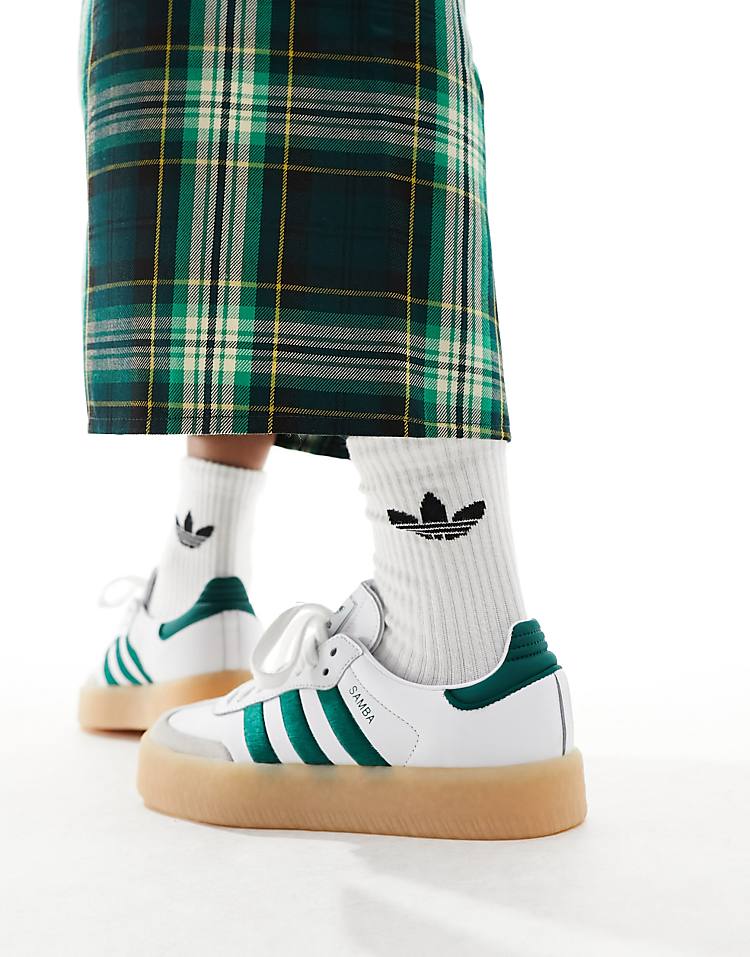 Адидас Сэмби кроссовки белые кожаные с характерной каучуковой подошвой и фирменным логотипом бренда.