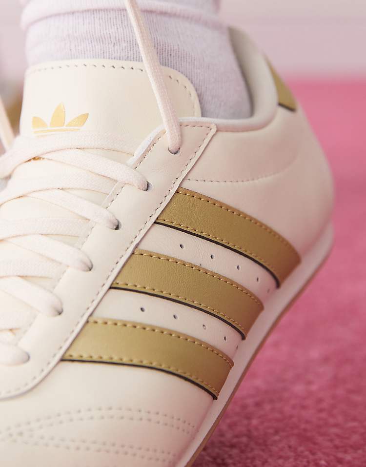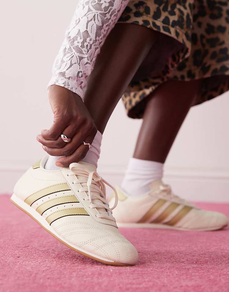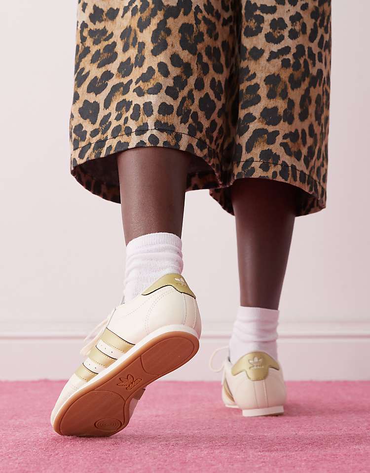 Классические кроссовки adidas Originals Taekwondo в бежево-золотом исполнении — это сочетание стиля и функциональности, достойное культового бренда. Верхняя часть пары выполнена из гладкой натуральной кожи, что обеспечивает не только презентабельный внешний вид, но и долговечность при активной носке. Оформление в светлой гамме — благородный оттенок слоновой кости с золотистыми акцентами на язычке и пятке — придаёт модели утончённость и делает её идеальным выбором как для повседневной носки, так и для создания лёгких образов в стиле спорт-шик. Низкий профиль и шнуровка классического типа гарантируют надёжную посадку на стопе, а мягкая манжета в области лодыжки добавляет комфорта.