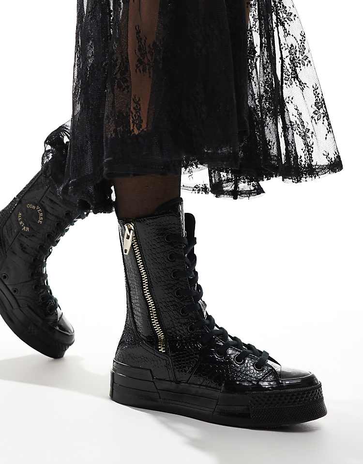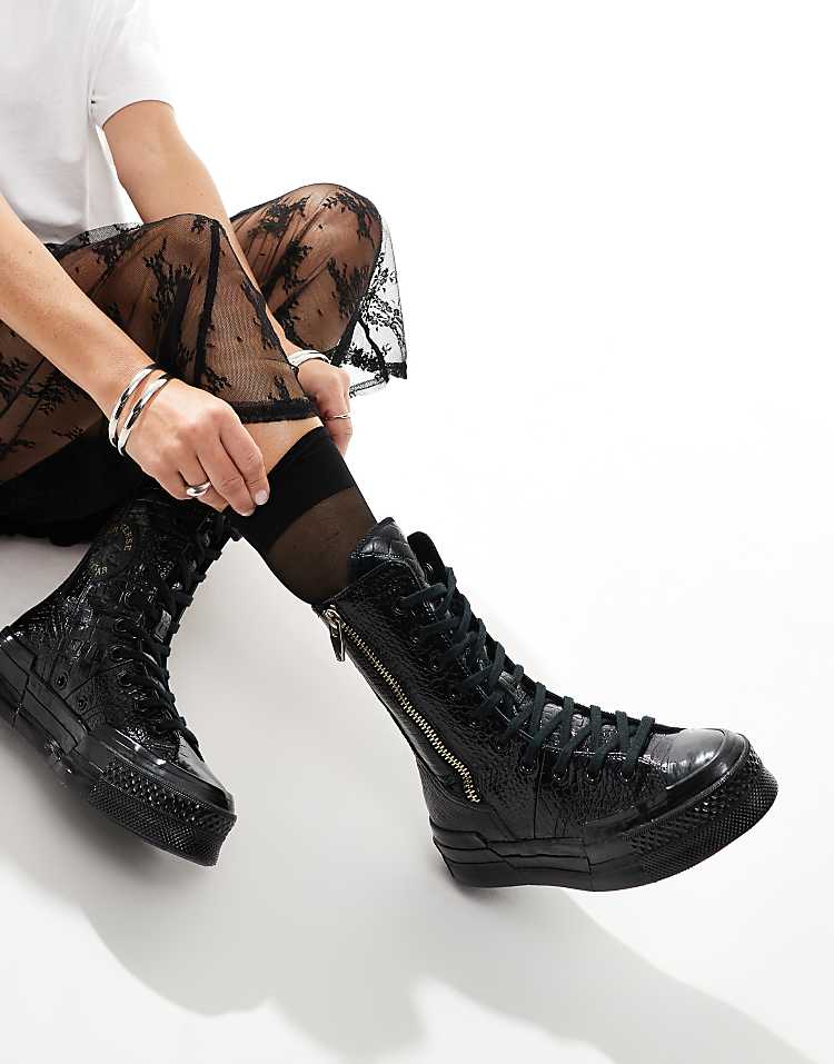 Конверс Чак 70 высокие кроссовки из текстурированной искусственной кожи черного цвета.