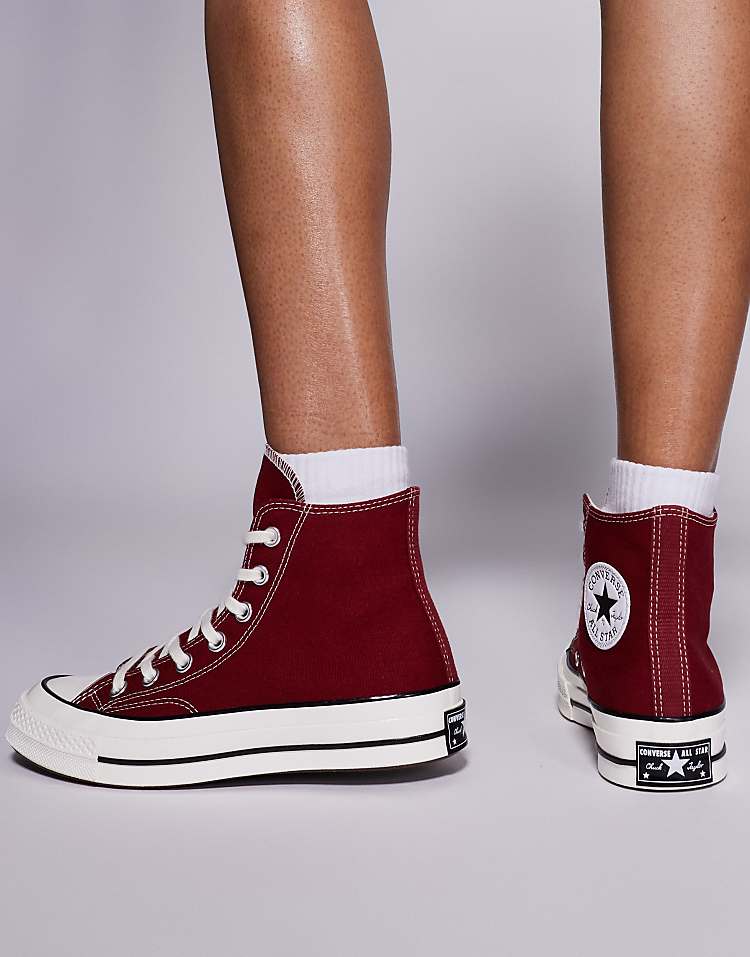 Конверс Чак 70 высокие кроссовки из прочного холста бордового цвета.