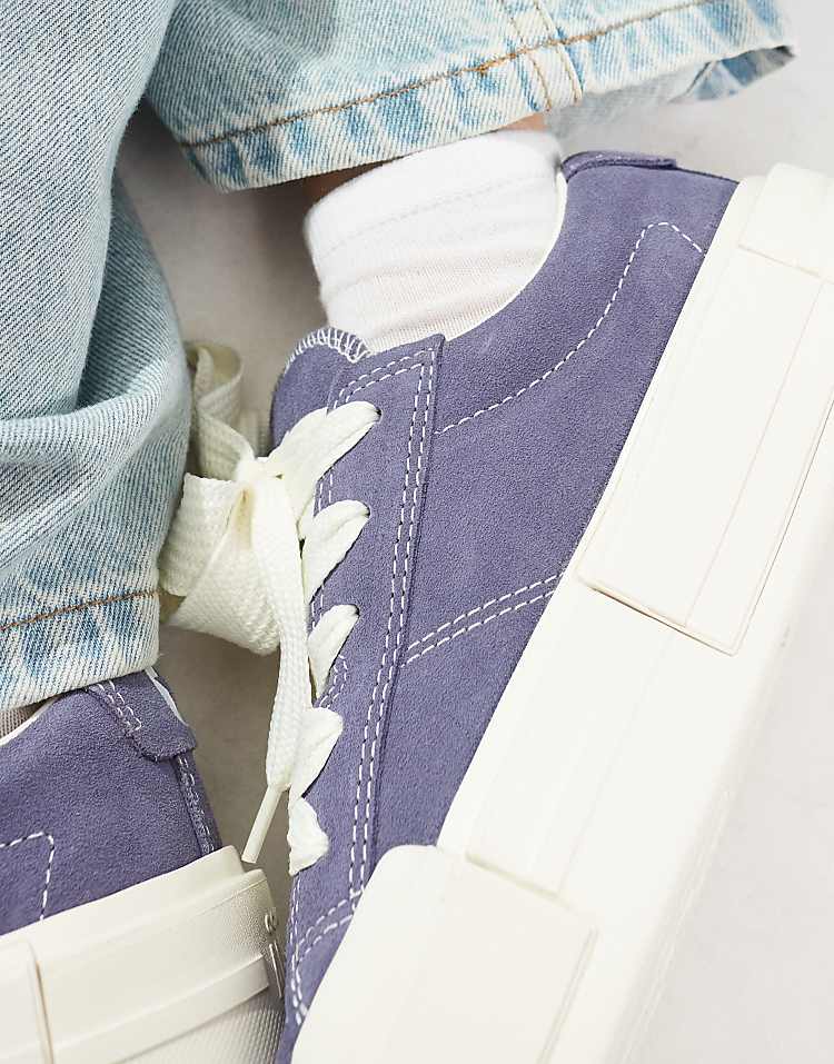 Кроссовки выполнены в фиолетовом оттенке lilac, который добавляет образу свежести и индивидуальности. Замшевый верх требует бережного ухода — достаточно протирать поверхность влажной салфеткой. Низкопрофильная посадка и шнуровка обеспечивают плотную посадку на ноге. Подошва изготовлена из прочной резины, а промежуточная стелька из EVA пены добавляет амортизации и облегчает долгую ходьбу. Рифлёная подошва обеспечивает хорошее сцепление с поверхностью.