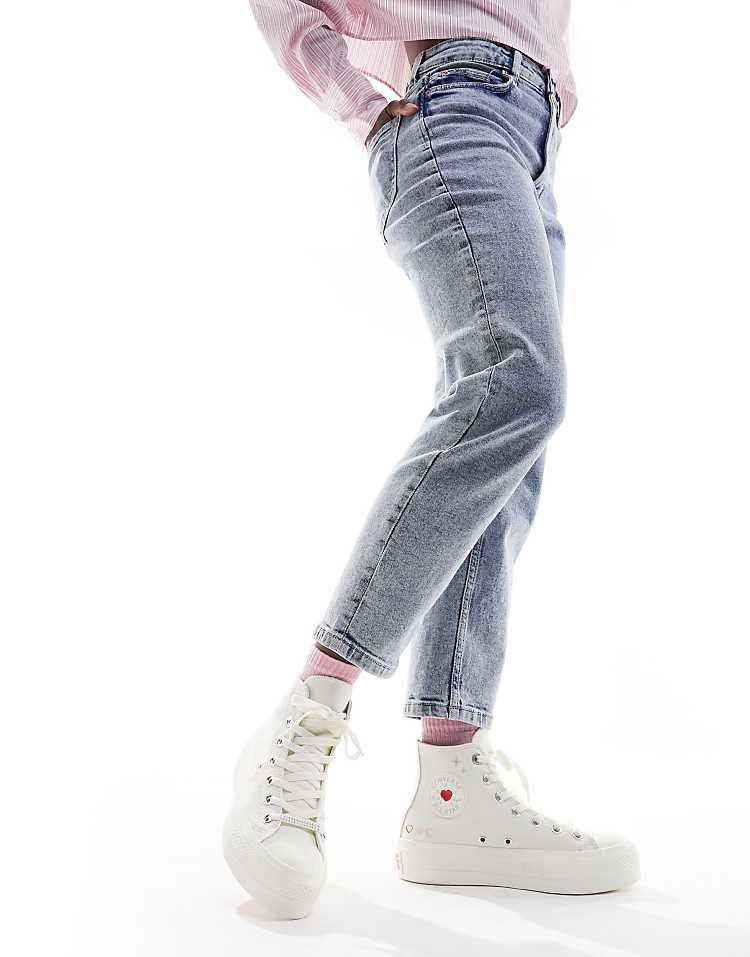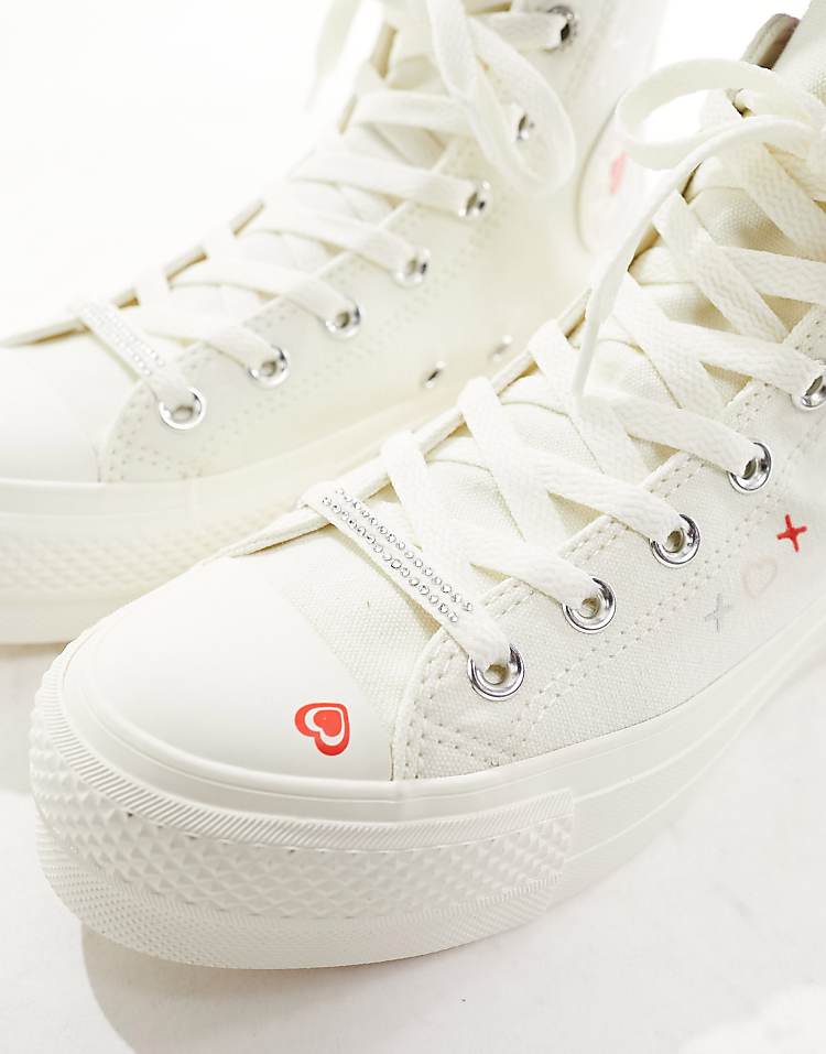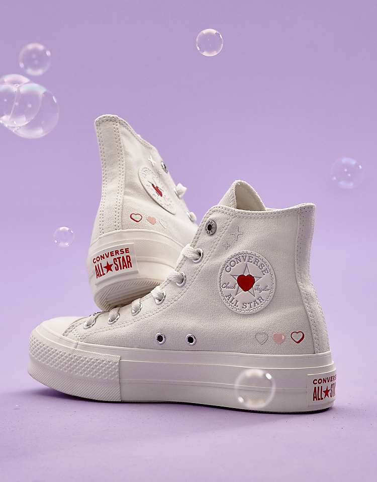 Конверс Чак Тейлор Олл Стар высокие кроссовки с вышивкой сердец выполнены из прочного полотна, идеально подходят для повседневной носки.