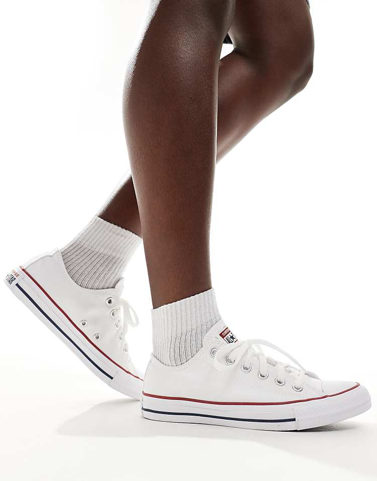 Конверс Чак Тейлор Олл Стар Окс кеды белые из холстовой ткани с классическим дизайном и прочной резиновой подошвой.