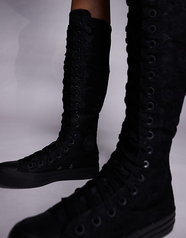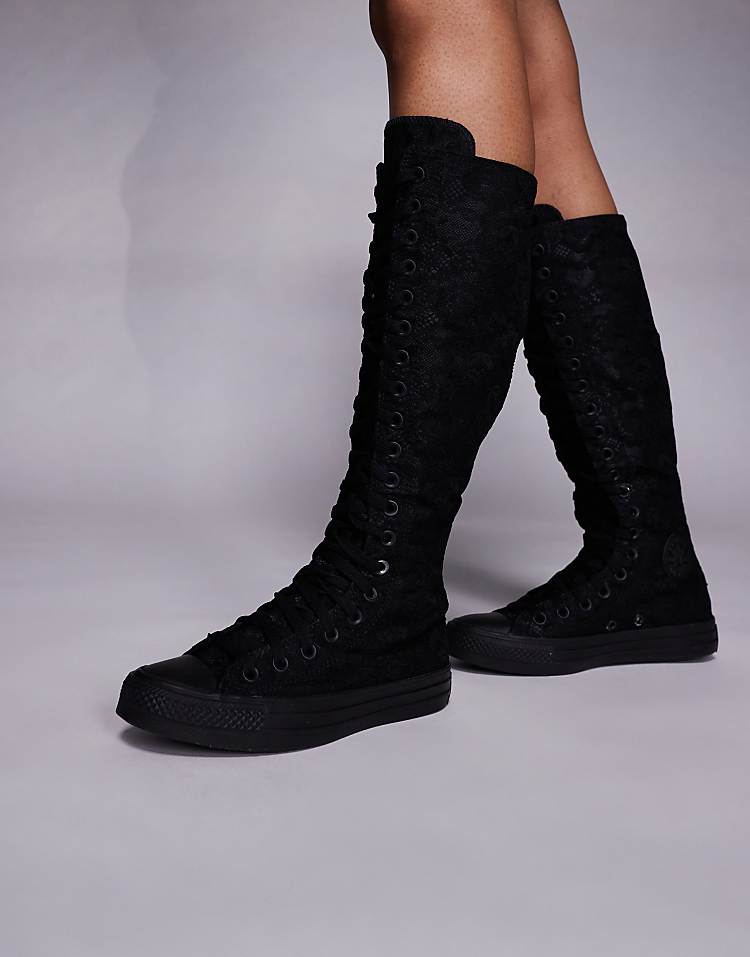 Конверс чак тейлор XX-Hi кроссовки черные с кружевным принтом на шнуровке и застежке-молнии сзади, высокие модели отличаются дерзким дизайном и удобной посадкой.