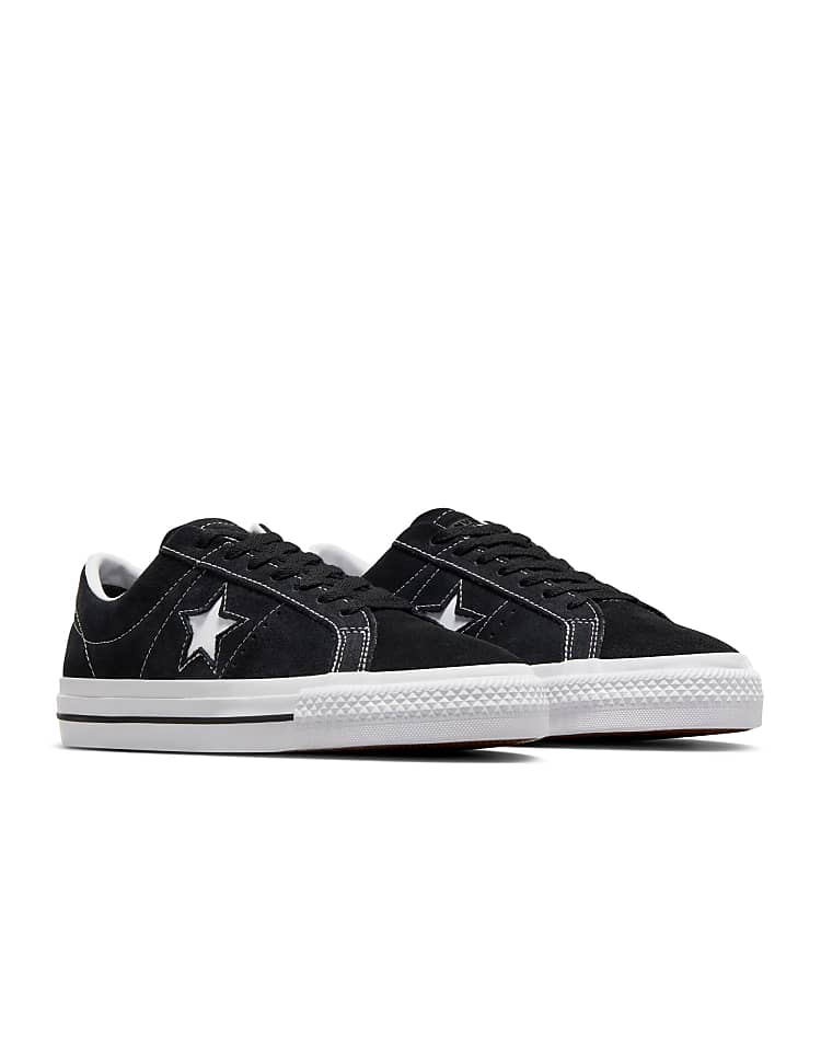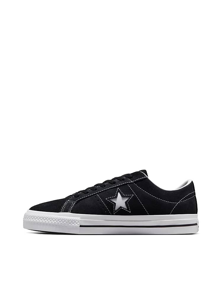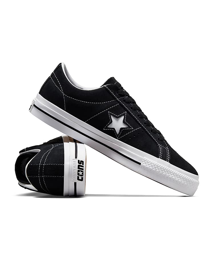 Конверс One Star кроссовки повседневные черного цвета из натуральной кожи с перфорацией для вентиляции.