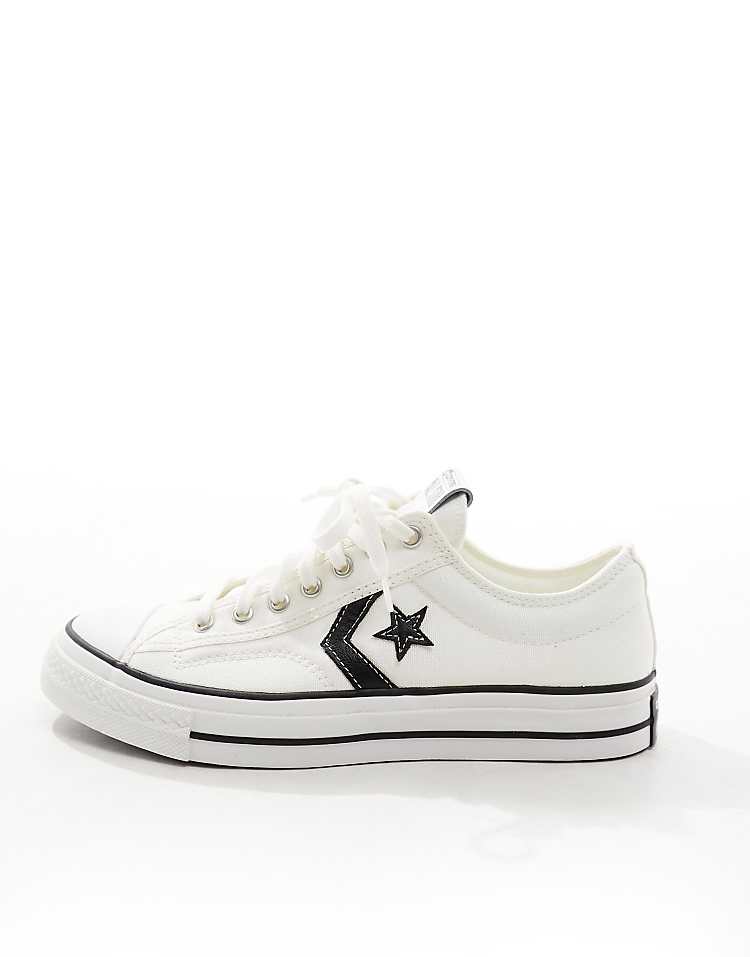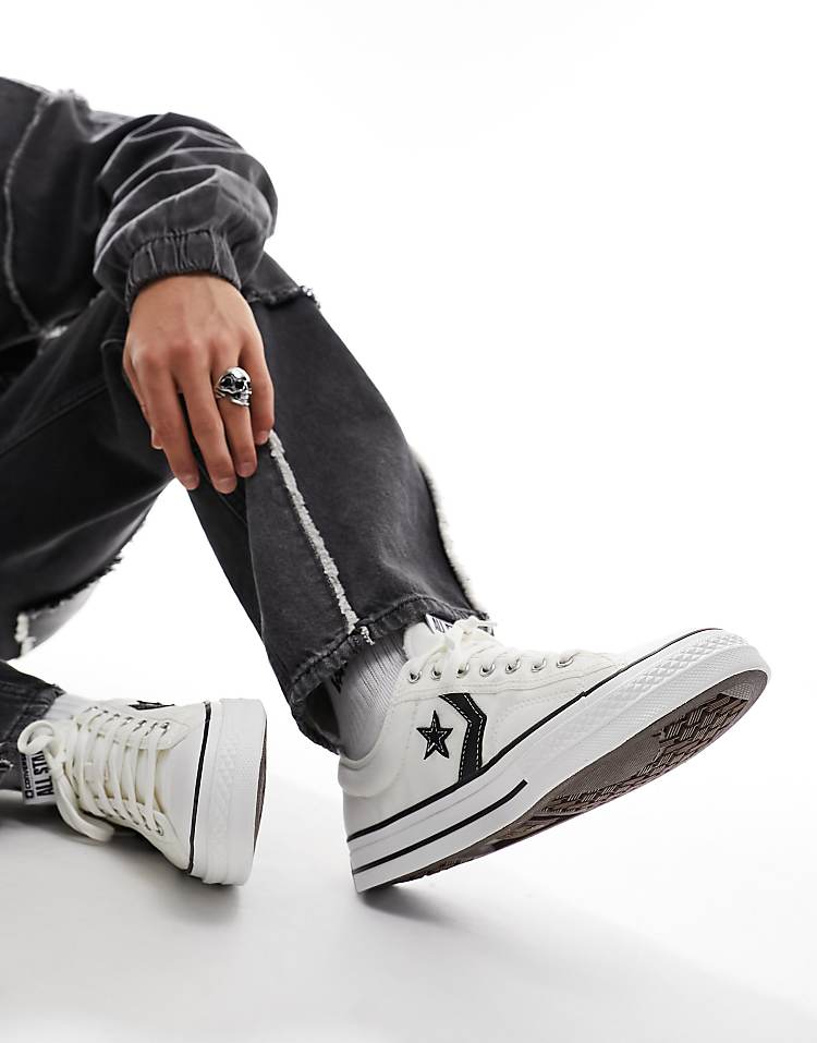 Конверс Стар Игрок кроссовки из ткани белые с черными деталями.