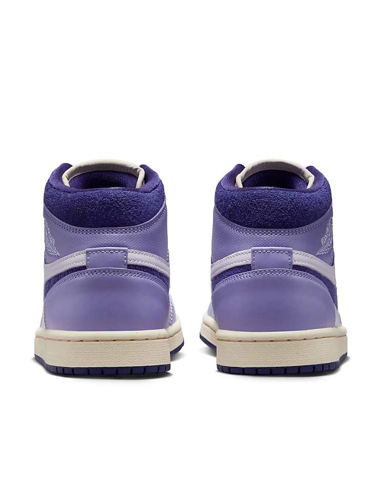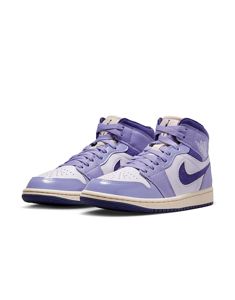 Джордан Эйр Джордан 1 Мид SE кроссовки фиолетовые с кожаным верхом и фирменной подошвой с воздушной амортизацией.