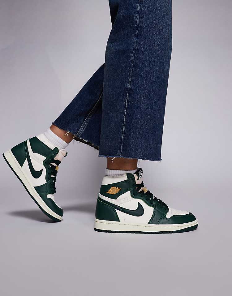 Джордан Эйр Джордан 1 Ретро Хай ОДЖ кроссовки белые с зеленым и фирменным логотипом Jumpman.