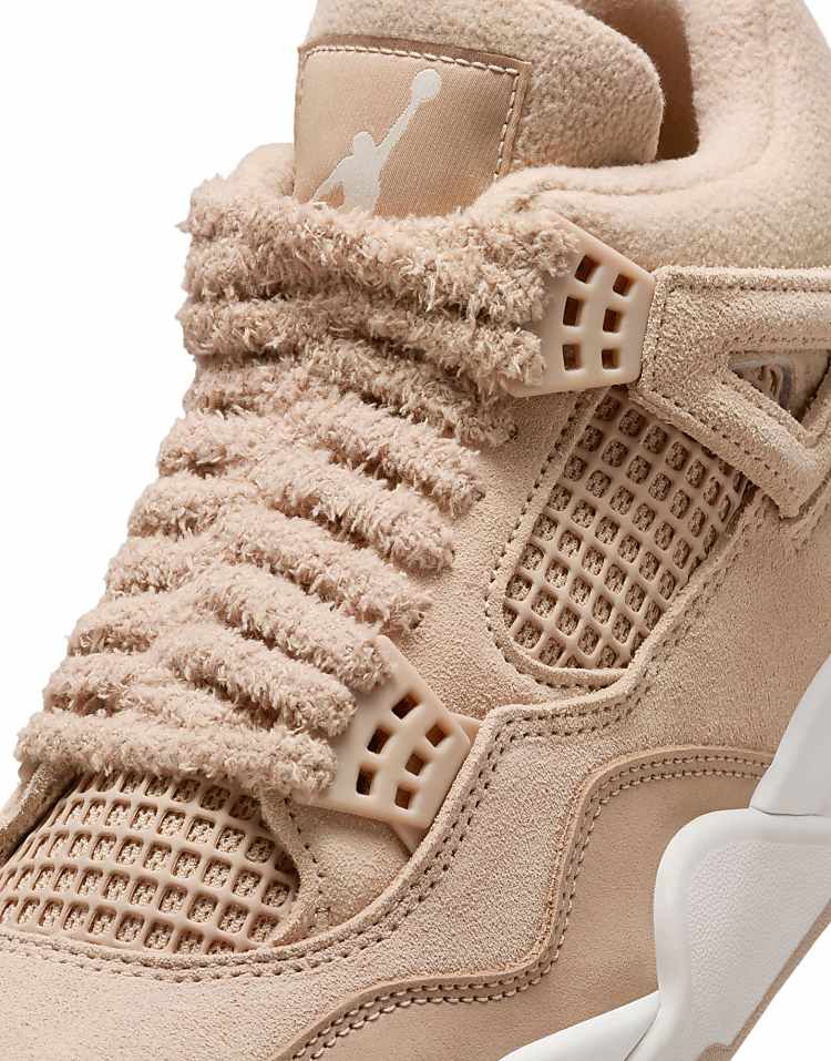Джордан 4 ретро кроссовки бежевого цвета с текстурированным верхом из натуральной кожи и фирменной подошвой с воздушной амортизацией.