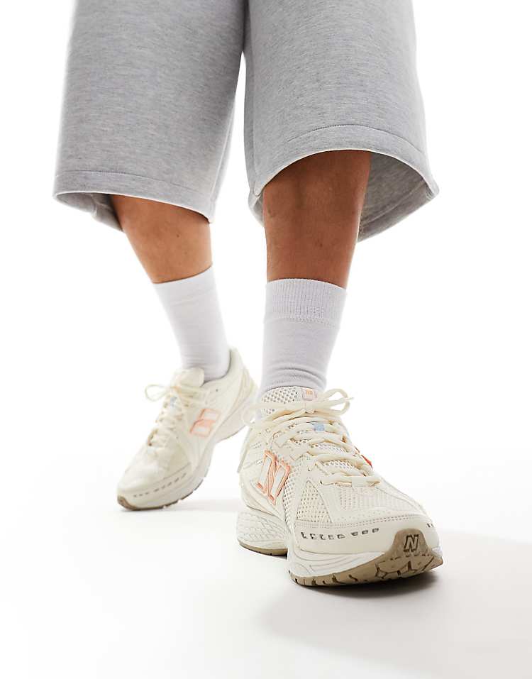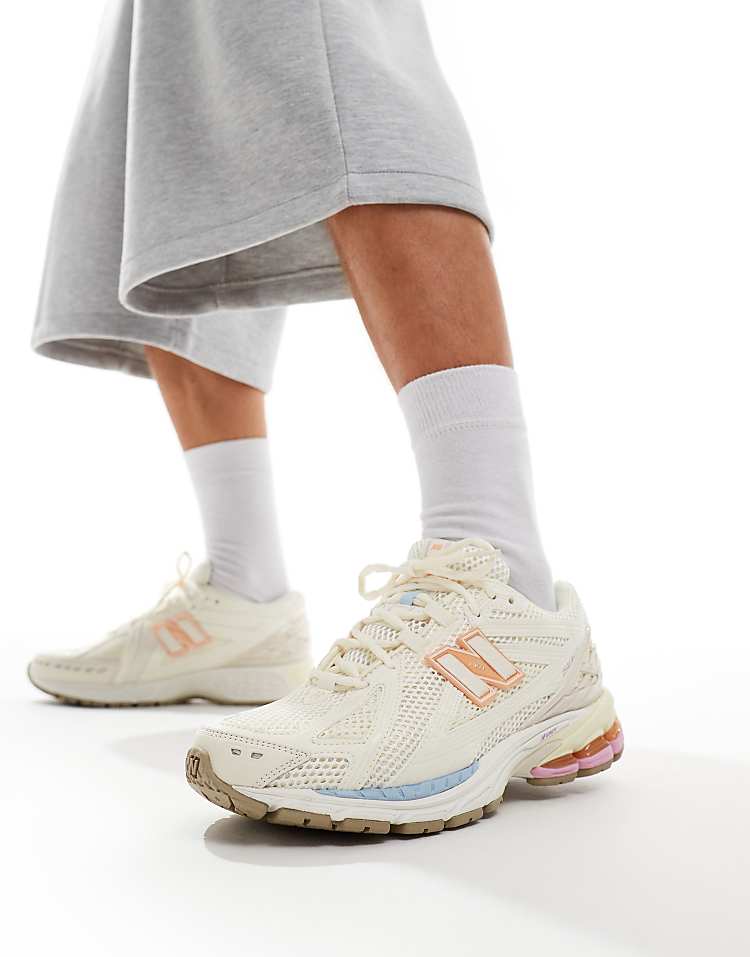 Нью Беланс 1906 кроссовки белые с синими и розовыми акцентами.