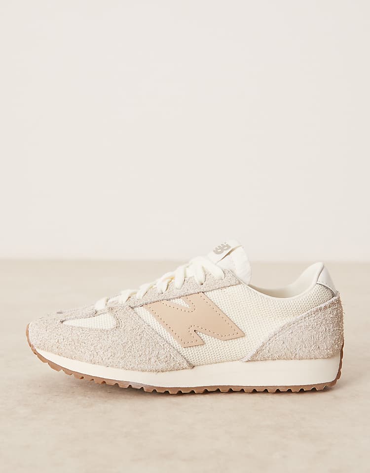 Классические кроссовки New Balance 471 — это идеальный выбор для тех, кто ценит комфорт и стиль в повседневной носке. Модель выполнена в нейтральной цветовой гамме, где бежевый и серовато-коричневый оттенки создают сдержанный и универсальный образ, легко сочетаемый с любой одеждой. Верх обуви комбинированного типа: 50% — мягкая замша, 50% — прочный текстиль, что обеспечивает хорошую воздухопроницаемость и придаёт текстуру фактурности. Такие замшевые кроссовки отлично смотрятся как с джинсами, так и с лёгкими хлопковыми брюками или шортами.