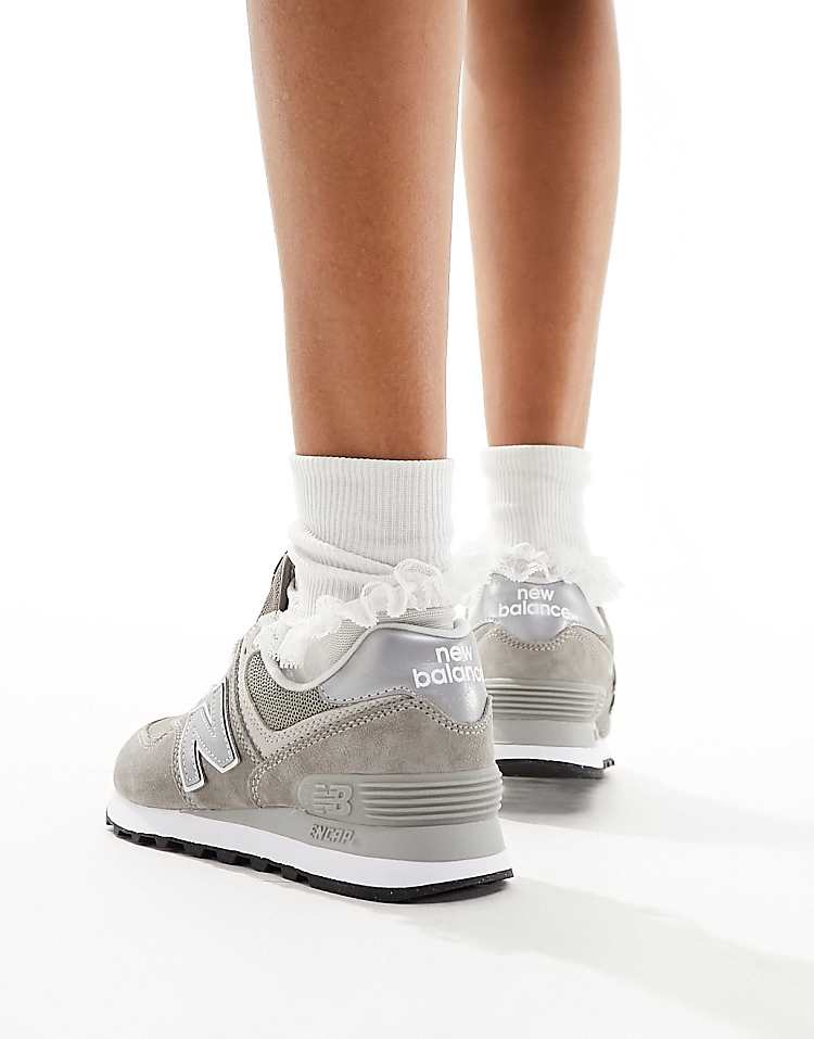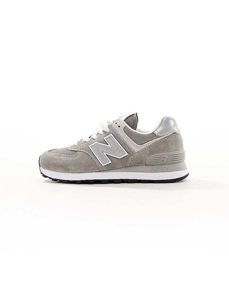 Нью Беланс 574 кроссовки серого и белого цвета из замши и текстиля с технологией ENCAP.