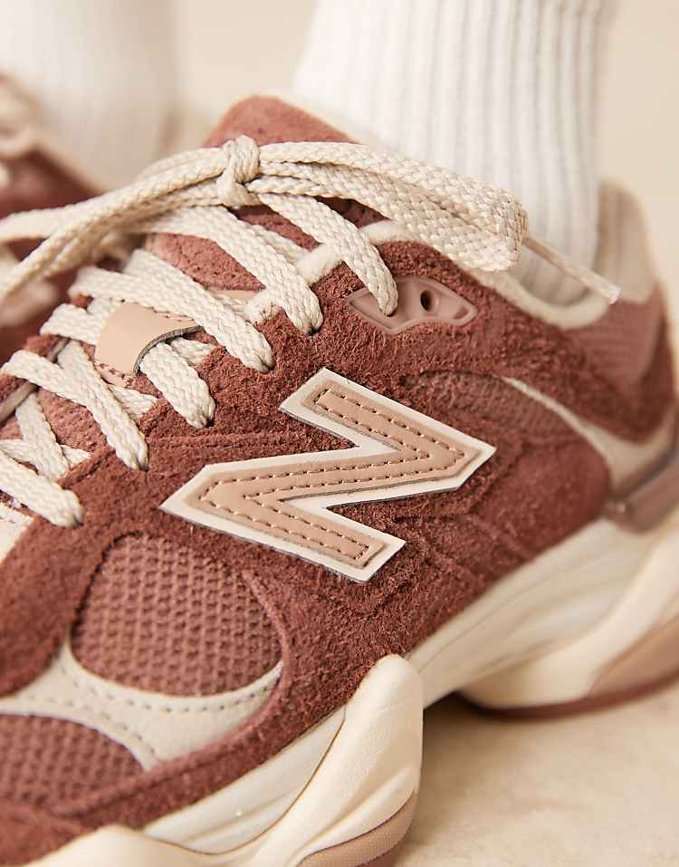 Нью Беланс 9060 кроссовки коричневого цвета с технологией амортизации ABZORB и текстурированной резиновой подошвой.