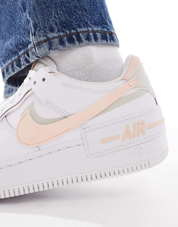 Найк Эир Форс 1 Шадоу белые кроссовки с розовыми элементами и кожаным верхом.