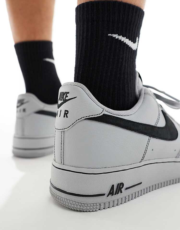 Найк Эйр Форс 1 кроссовки серые из натуральной кожи с контрастной строчкой.