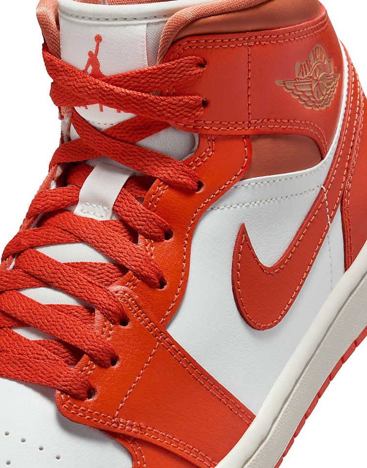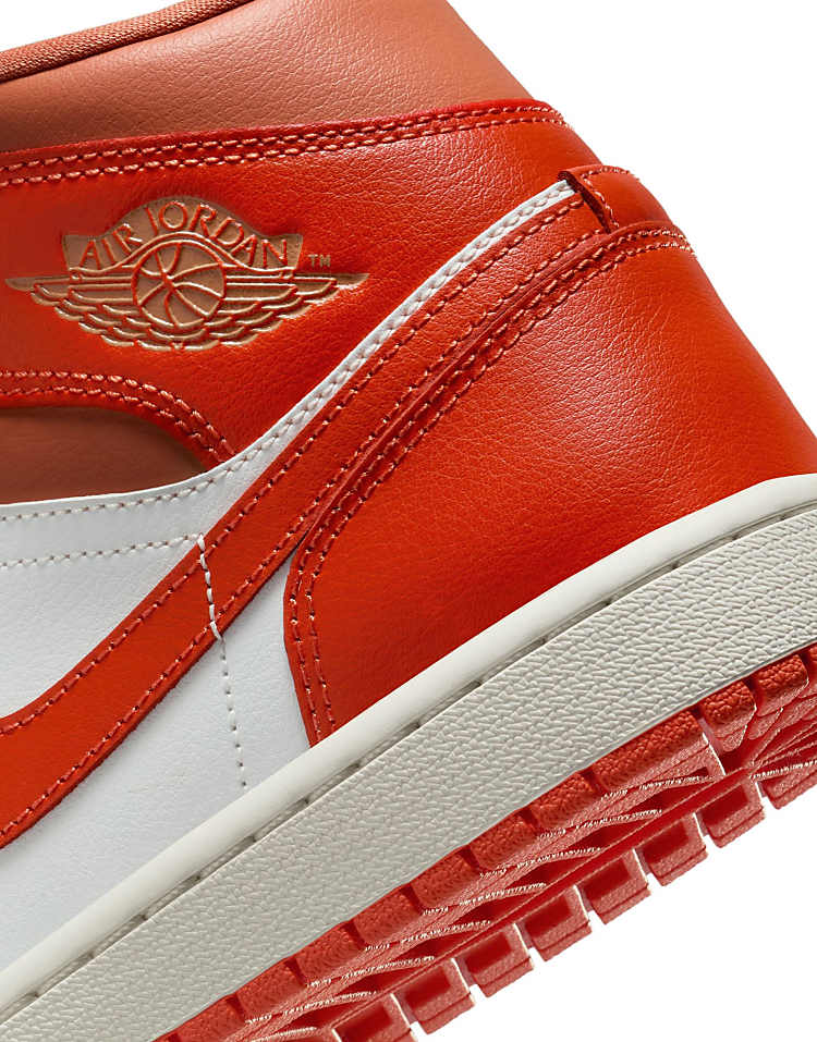 Найк Эйр Джордан 1 Мид кроссовки женские оранжевые из натуральной кожи с перфорацией и амортизацией Air.