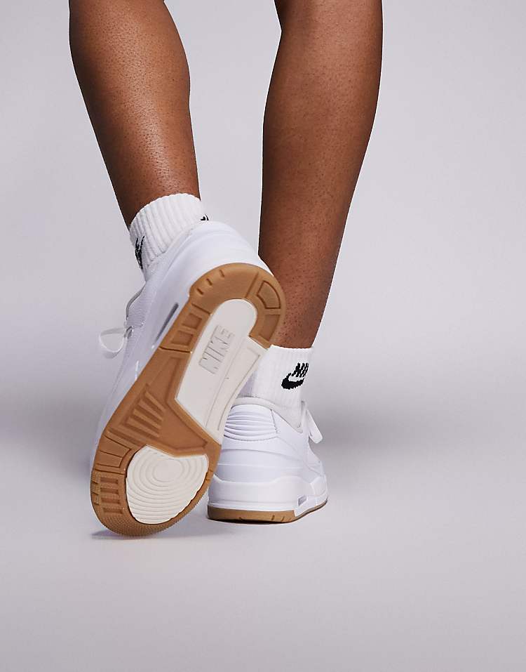 Внутренняя часть обуви включает дополнительную амортизацию Max Air в промежуточной подошве, которая смягчает каждый шаг. Плотно набивной язычок и уплотнённый верх обхвата лодыжки обеспечивают надёжную посадку и уютную посадку. Изюминкой дизайна являются фирменные элементы бренда Jordan, подчёркивающие принадлежность к линейке культовых кроссовок.