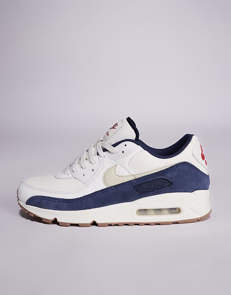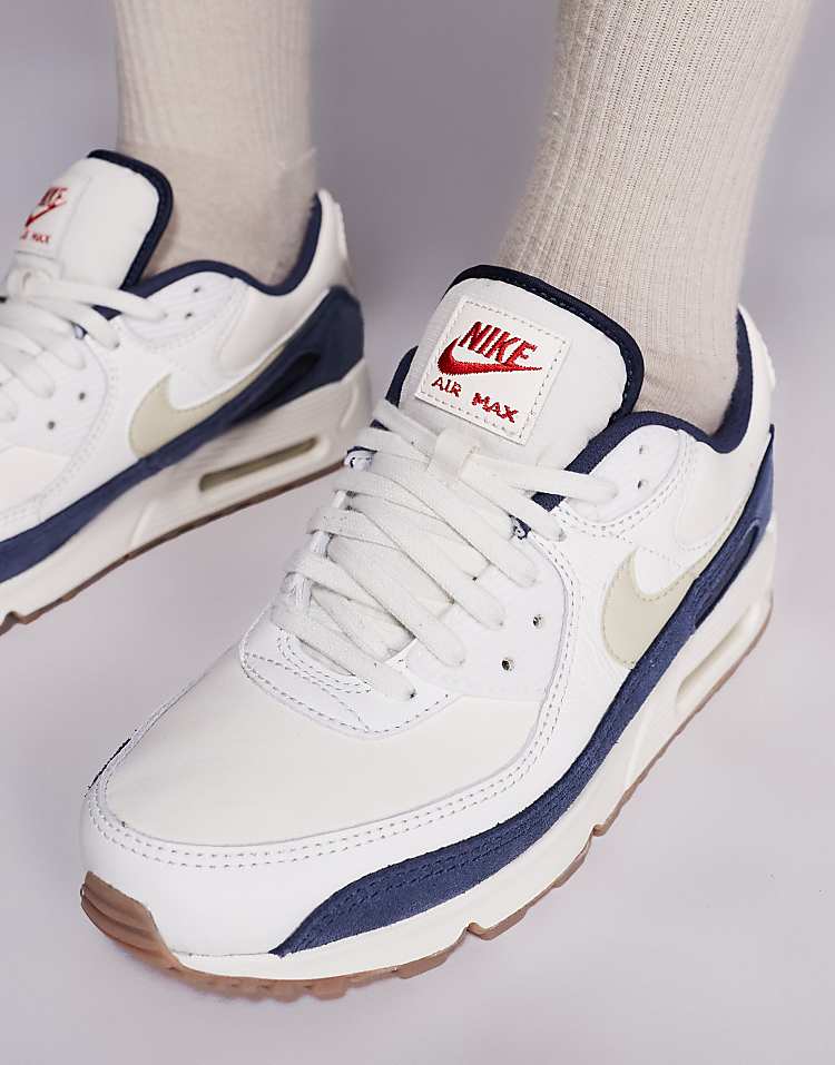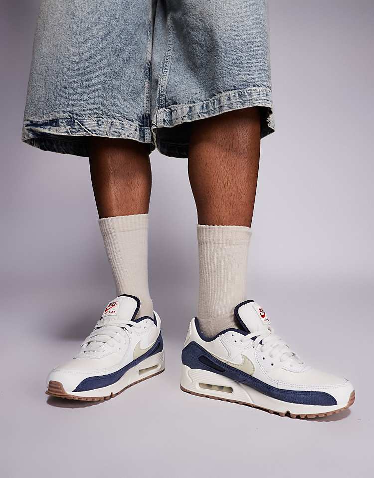 Найк Аир Макс 90 кроссовки мужские повседневные с видимой амортизацией Max Air и верхом из ткани бежевого оттенка.