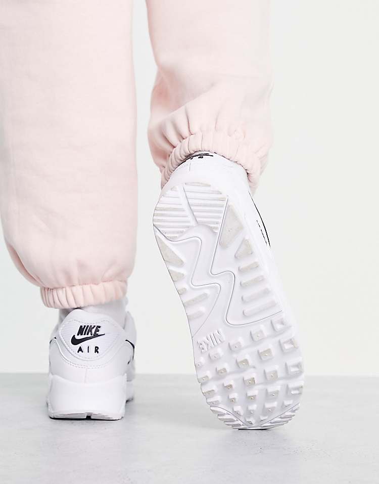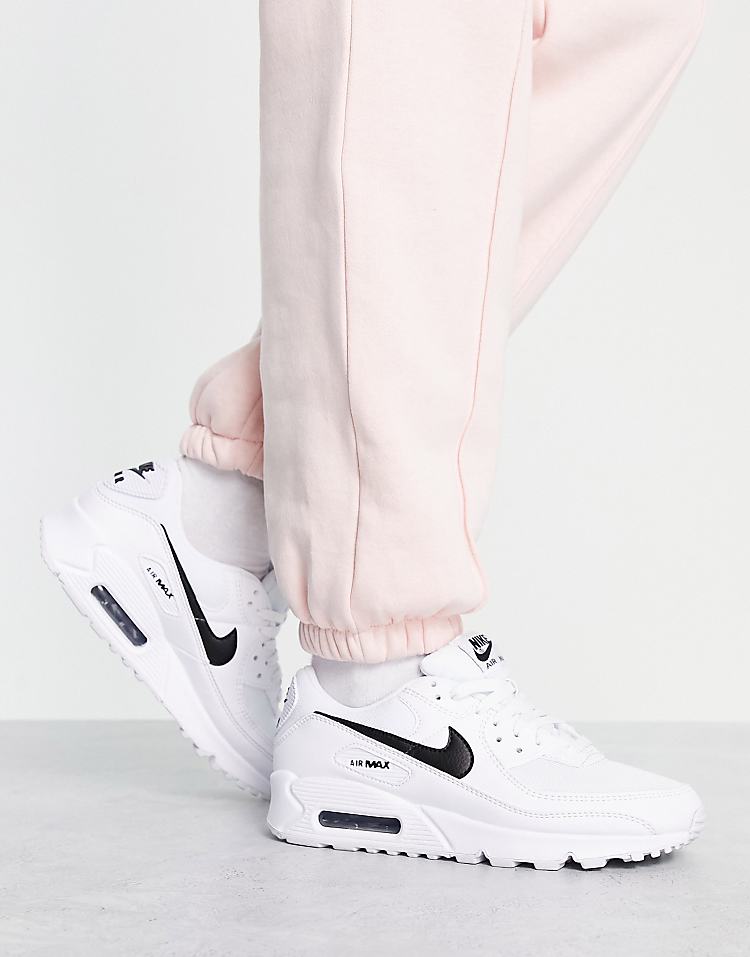 Найк Аир Макс 90 кроссовки белые повседневные с амортизацией и видимой воздушной подушкой в пятке для максимального комфорта при ходьбе и тренировках.