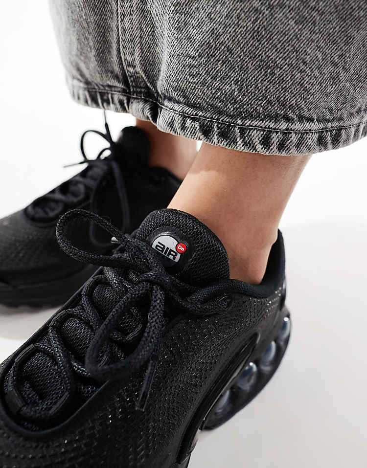 Кроссовки Nike Air Max DN выделяются современным дизайном с узнаваемым логотипом бренда, что подчеркивает их принадлежность к линейке Nike и добавляет спортивной эстетики в любой образ. Их черный цвет универсален и легко сочетается как с джинсами, так и с спортивными комплектами.