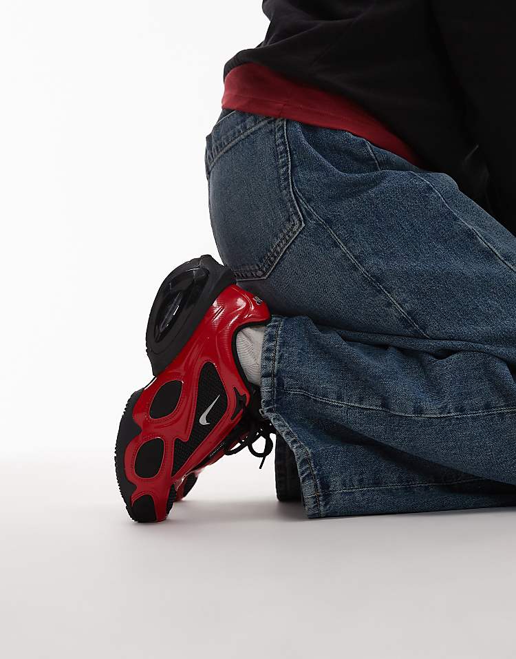 Найк Аир Макс Мьюз жёнские красные кроссовки на платформе с текстурированной подошвой и амортизацией Max Air.
