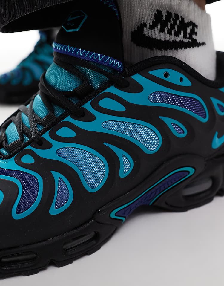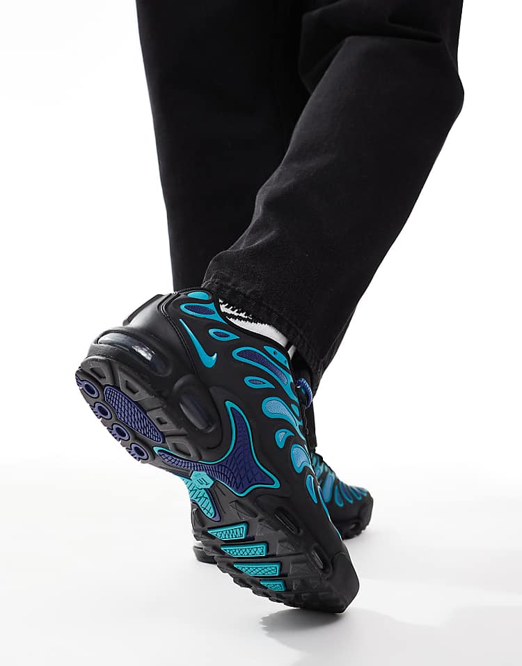 Найк Эир Макс Плюс Дрифт кроссовки черные с технологией амортизации Air и текстурированной подошвой.