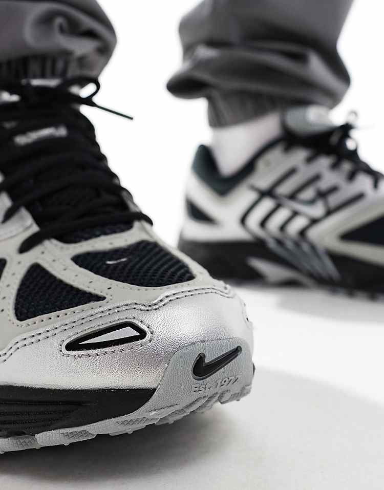 Один из культовых силуэтов бренда Nike — кроссовки Air Pegasus 2005 — сочетают в себе проверенную временем конструкцию и современные технологии комфорта. Модель выполнена в классической цветовой гамме: черный верх с акцентами серебристого и белого, что делает их универсальными для любого образа. Верх изготовлен из дышащей сетки с элементами пластика для дополнительной поддержки — это обеспечивает хорошую вентиляцию и удержание стопы.