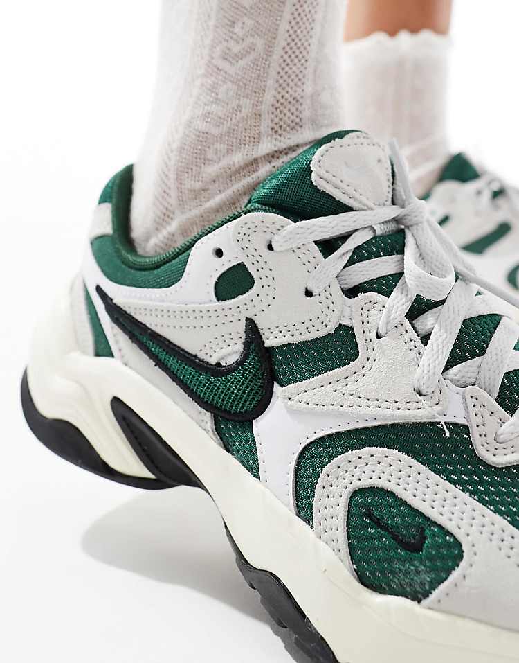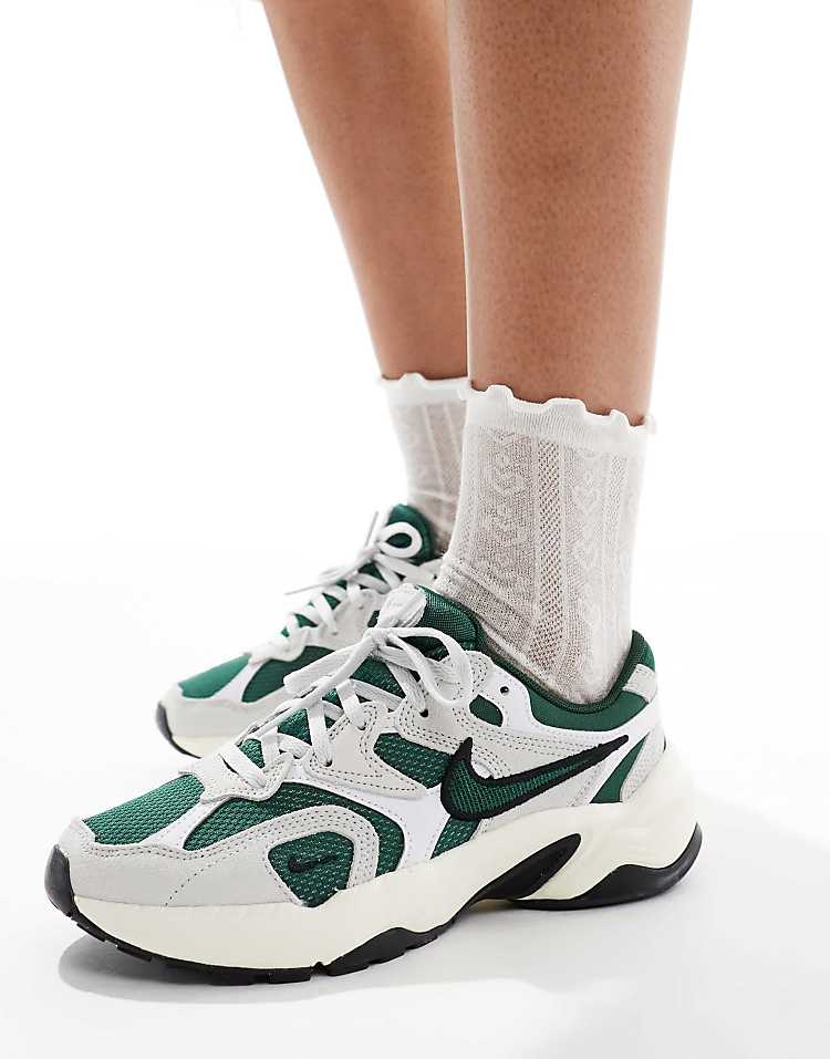 Эти женские кроссовки Nike сочетают в себе удобство повседневной обуви и стиль, характерный для бренда. Модель AL8 выполнена в классическом белом цвете с зелеными акцентами, что делает её универсальным выбором для любого образа. Верх изготовлен из сочетания сетки, замши и натуральной кожи, обеспечивая дышащие свойства и комфорт в носке.