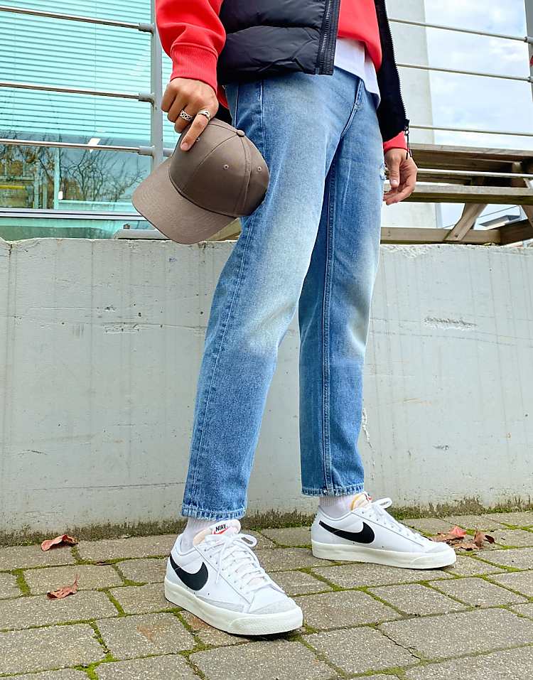 Найк Блейзер повседневные кроссовки из белой кожи с элементами замши и винтажной подошвой.