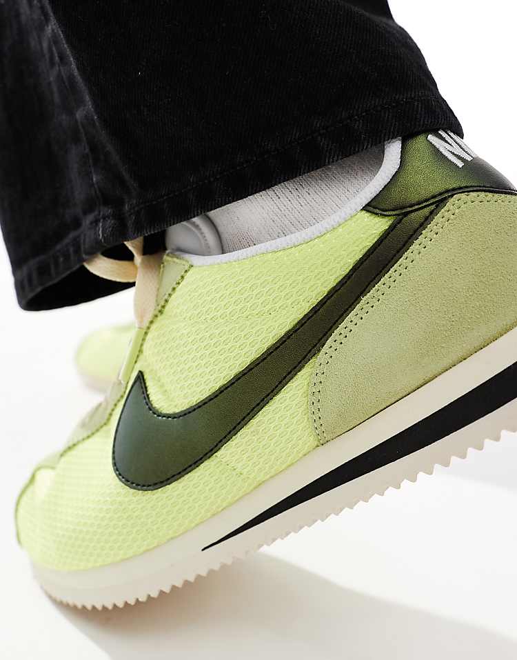 Найк Кортец кроссовки светло-зелёные повседневные на текстильной подошве с фирменной амортизацией и плотной посадкой.