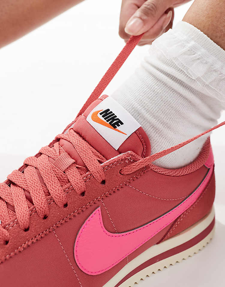 Найк Кортеz кроссовки текстильные красные и розовые с мягким верхом и фирменной подошвой.