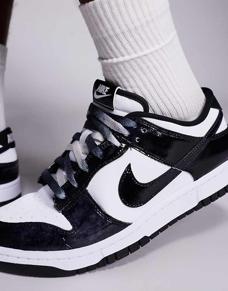 Классические кроссовки Nike Dunk Low возвращаются в обновлённой версии Retrofit SE, сочетая в себе винтажный стиль и современные технологии комфорта. Модель выполнена из матовой натуральной кожи, что придаёт обуви выразительный внешний вид и обеспечивает долговечность. Белый верх с контрастными чёрными элементами — универсальное решение для создания стильного образа на каждый день. Перфорация в области носка улучшает вентиляцию, а мягкий язык и манжет плотно облегают стопу, обеспечивая посадку без избыточного давления.