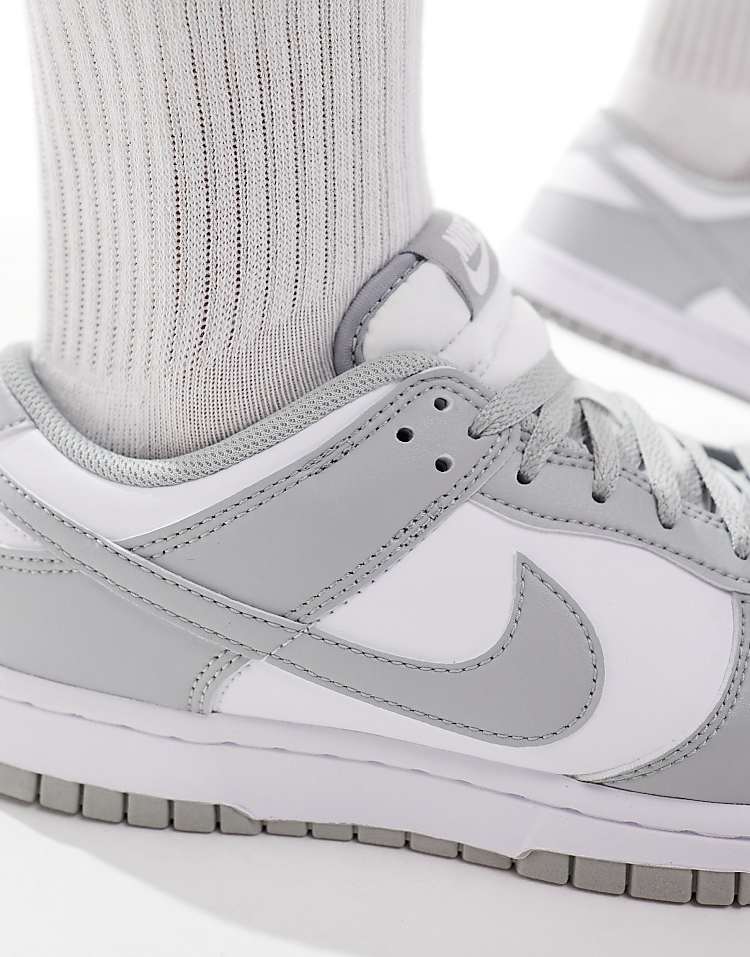 Найк Данк Лоу серые и белые кроссовки из натуральной кожи.
