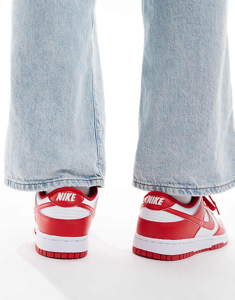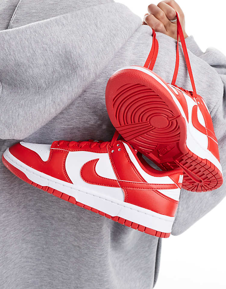 Найк Дунк Лоу ретро кроссовки белые с красным цветом и классическим дизайном для повседневной носки.