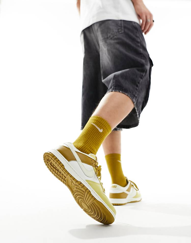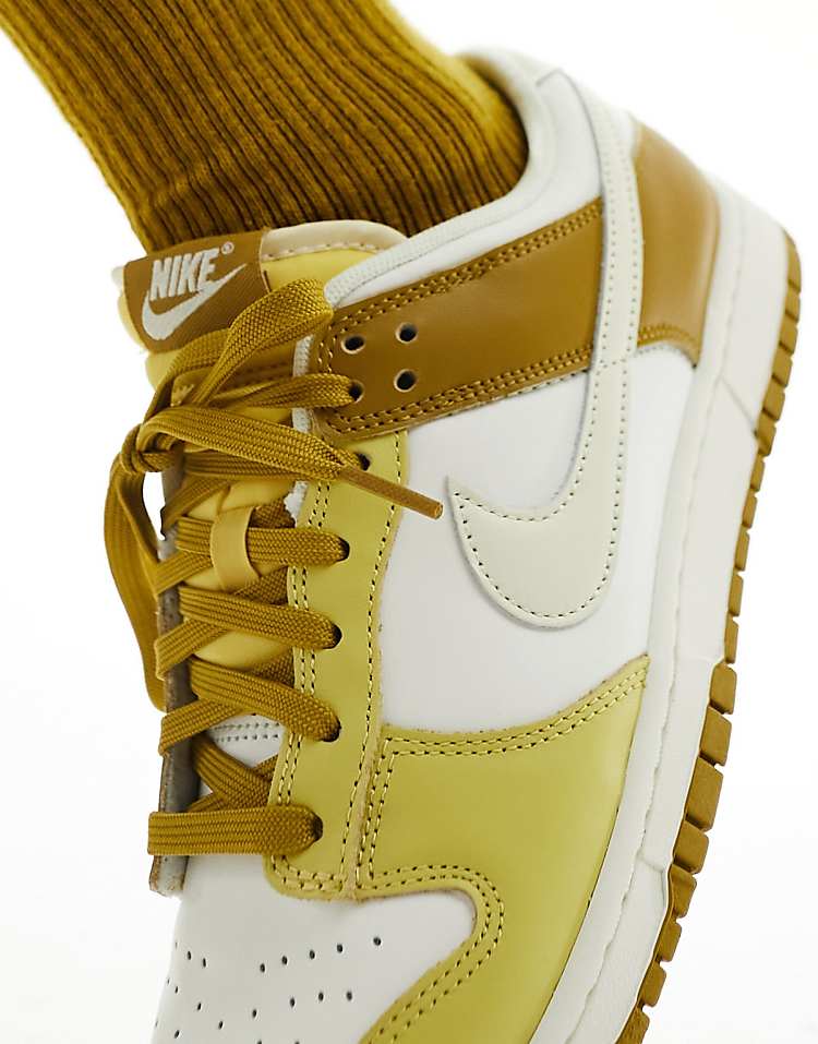 Найк Данк Ло кроссовки мужские в желто-бежевой цветовой гамме с перфорацией для вентиляции и фирменной подошвой.
