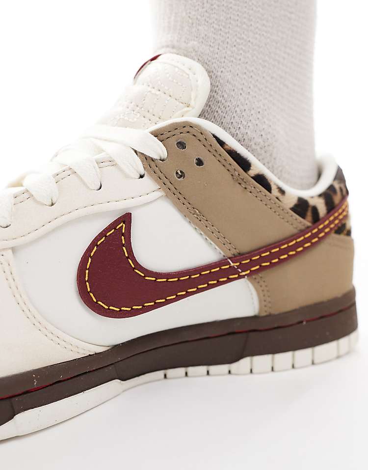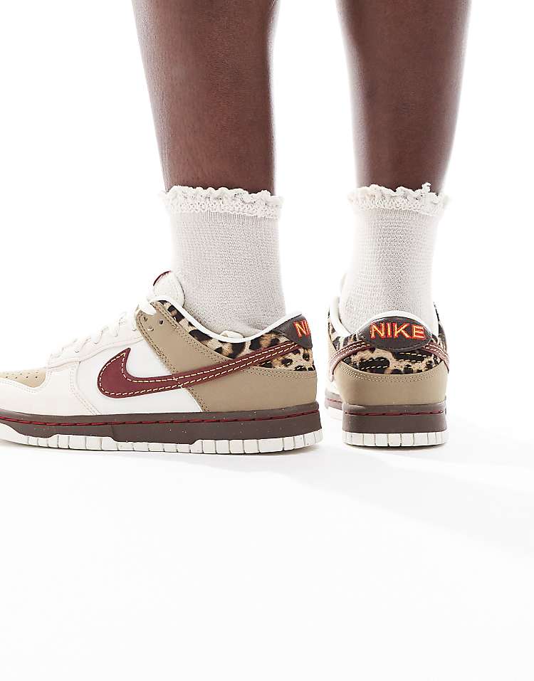 Классические кроссовки Nike Dunk — это идеальное сочетание стиля, комфорта и наследия бренда, которое остаётся актуальным из года в год. Модель выполнена из матовой кожи и замши, что придаёт верху фактурность и долговечность. Особое внимание привлекает текстурная вставка с эффектом животного принта на пятке — стильный акцент, выделяющий пару среди других моделей.