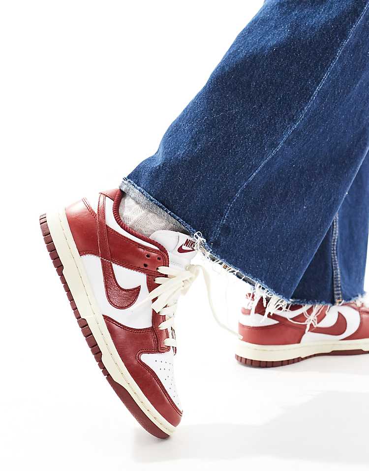 Найк Данк Лоу кроссовки белые с красными акцентами и технологией амортизации в подошве.
