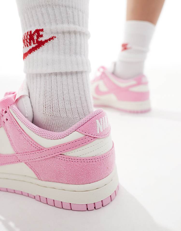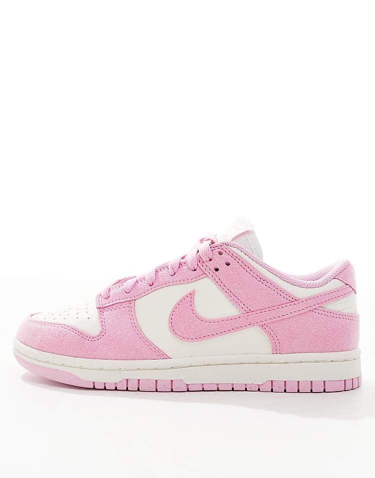 Найк Данк Лоу белые кроссовки с розовым акцентом и повседневным стилем.