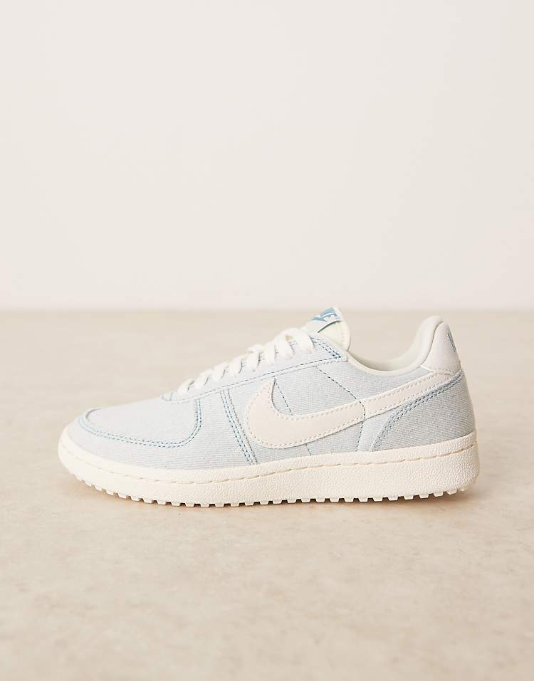Кроссовки Найк Field General в денимовом синем цвете — стильная и комфортная женская обувь для повседневной носки. Модель отличается низким профилем, что обеспечивает легкость и универсальность. Кроссовки оснащены классической шнуровкой для надежной фиксации на ноге, а мягкие амортизирующие язычок и манжета гарантируют комфорт даже при длительном использовании. На изделии присутствует фирменный логотип Nike, подчеркивающий аутентичность. Прочная резиновая подошва с рельефным протектором обеспечивает отличное сцепление с поверхностью и долговечность.