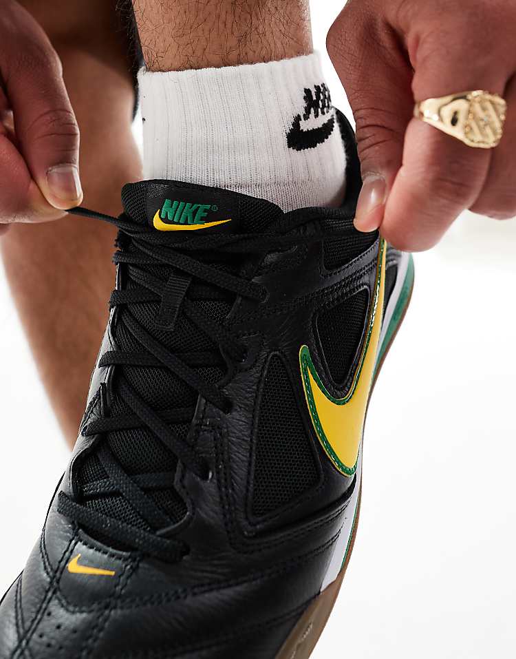 Кроссовки Nike Gato — это сочетание современного дизайна и функциональности для повседневной носки. Модель выполнена в классической цветовой гамме: черный верх с яркими желтыми акцентами придает обуви спортивный и динамичный вид. Благодаря лаконичному низкопрофильному дизайну, такие кроссовки легко вписываются как в спортивный, так и в городской стиль. Верх изготовлен из натуральной кожи и дышащей сетки, что обеспечивает комфорт и вентиляцию в течение дня. Плотная стелька и уплотнённый язычок с манжетой защищают стопу от трения и деформации при движении.