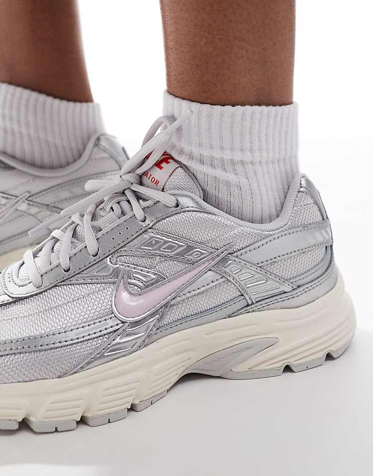 Найк Инитиатор кроссовки серые с розовым узором и сетчатыми вставками.